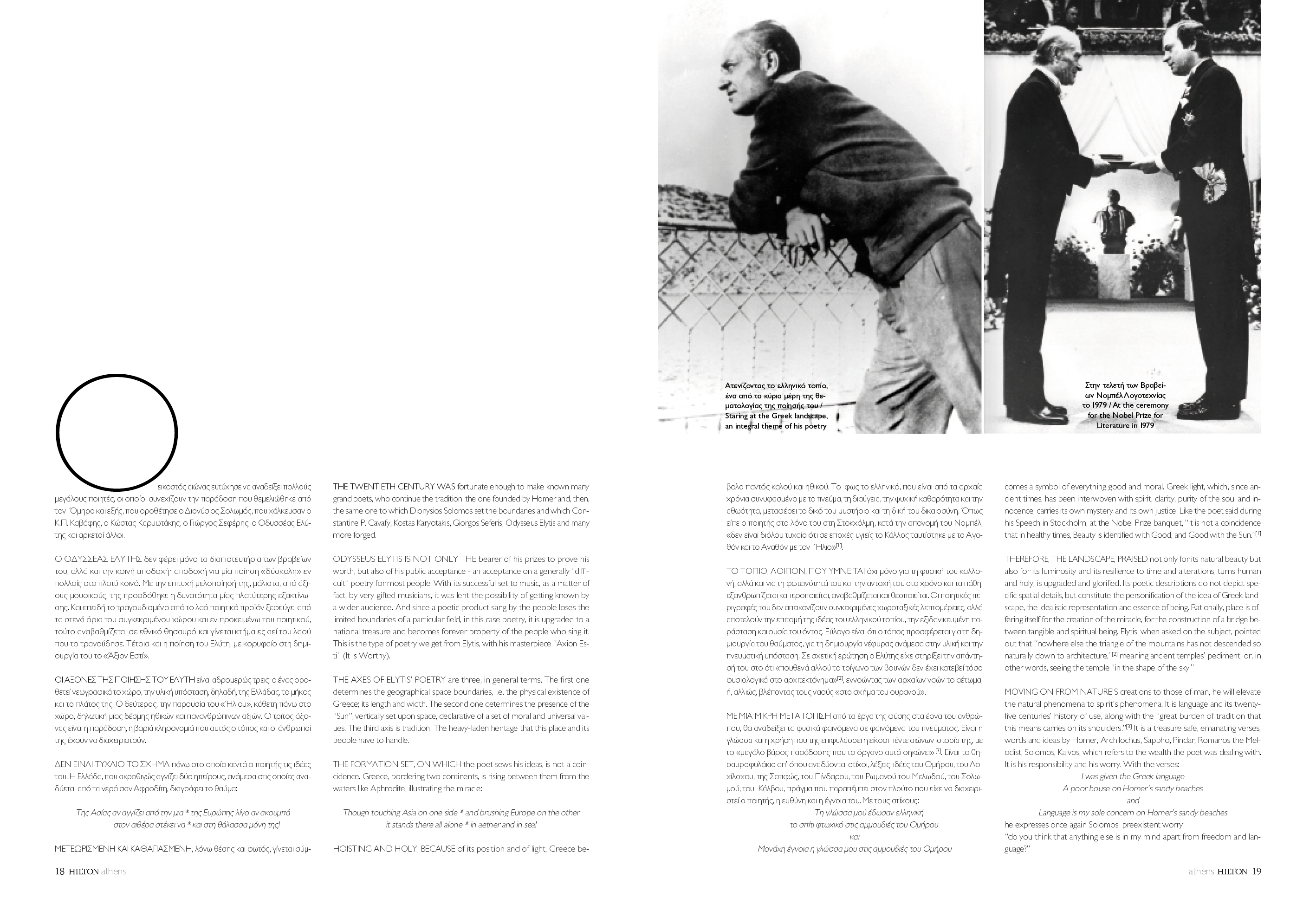 The Hilton Athens Magazine is not an ordinary run-of-the-mill publication, but an integral component of the business, social and cultural life of the city. Its pages introduce literature, art and entertainment personages from all around the world. The sections devoted to the fashion world and the high production value of the magazine are indicative of the desire of the people behind the Hilton Athens Magazine to create a cultural reference point.
