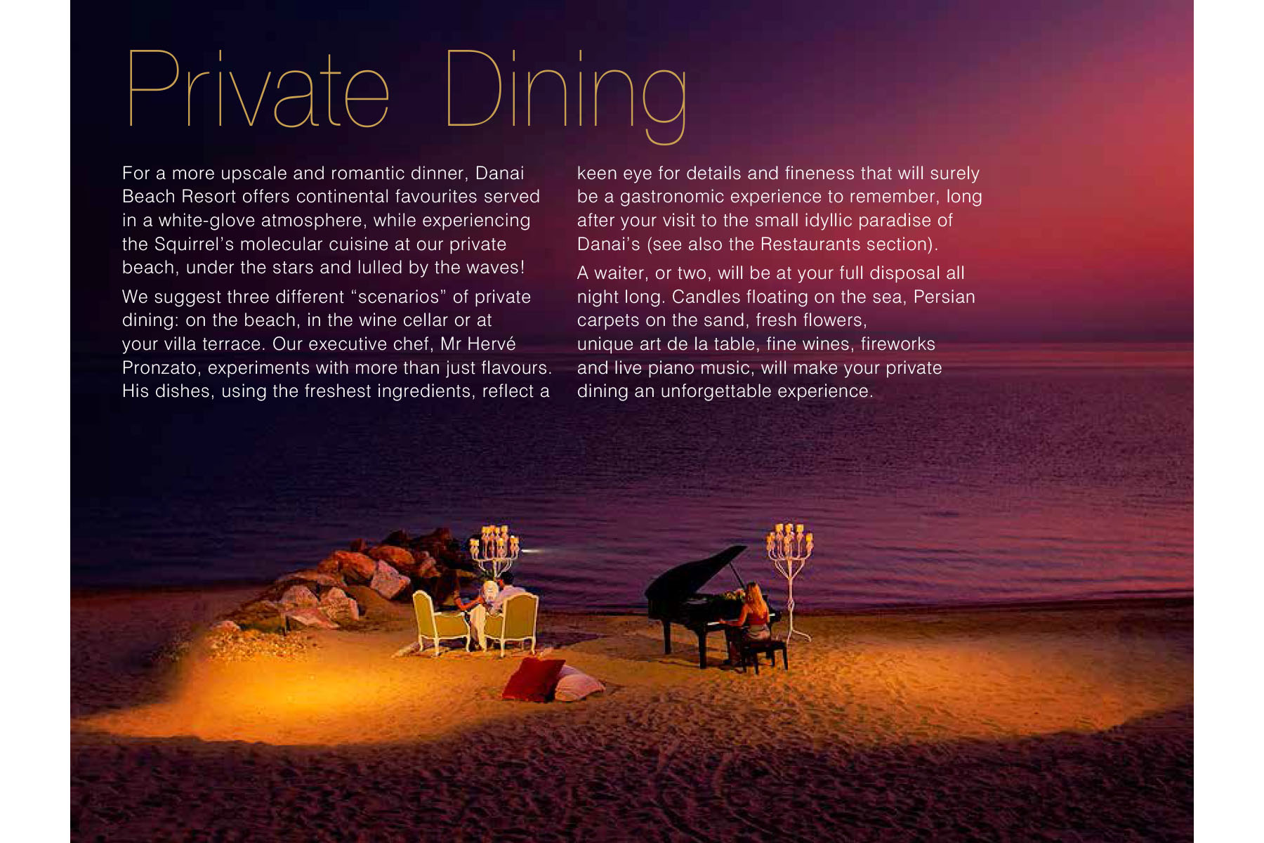 We created the Resort 30 years ago in one of the most beautiful places of Greece, in Sithonia of Chalkidiki. Our luxurious villas and suites, the swimming pool, the SPA, our restaurants and bar are built within a forest, facing our private beach. We aim at the highest level of services and the warm hospitality that Greeks are so famous for since the ancient years. Wish you the best time and may your vacation at Danai Beach Resort be memorable for a lifetime.