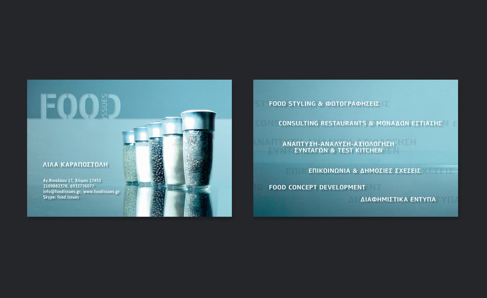 Η Food Issues αποτελεί μία καινοτόμο εταιρεία με επίκεντρο τις μονάδες που σχετίζονται με τον χώρο των τροφίμων και των ποτών και την HoReCa. Δραστηριοποιείται παρέχοντας υπηρεσίες food styling, food viral videos, δημιουργία συνταγών και tasting tests σε διαφημιστικές εταιρείες, εταιρείες promotion, event management, γραφεία marketing και digital marketing, αλλά και υπηρεσίες δημιουργίας μενού, κοστολόγησης μενού, στελέχωση κουζίνας, αναβάθμισης προσωπικού και ειδικά επαγγελματικά σεμινάρια σε ξενοδοχεία, εστιατόρια και καφέ-μπαρ.